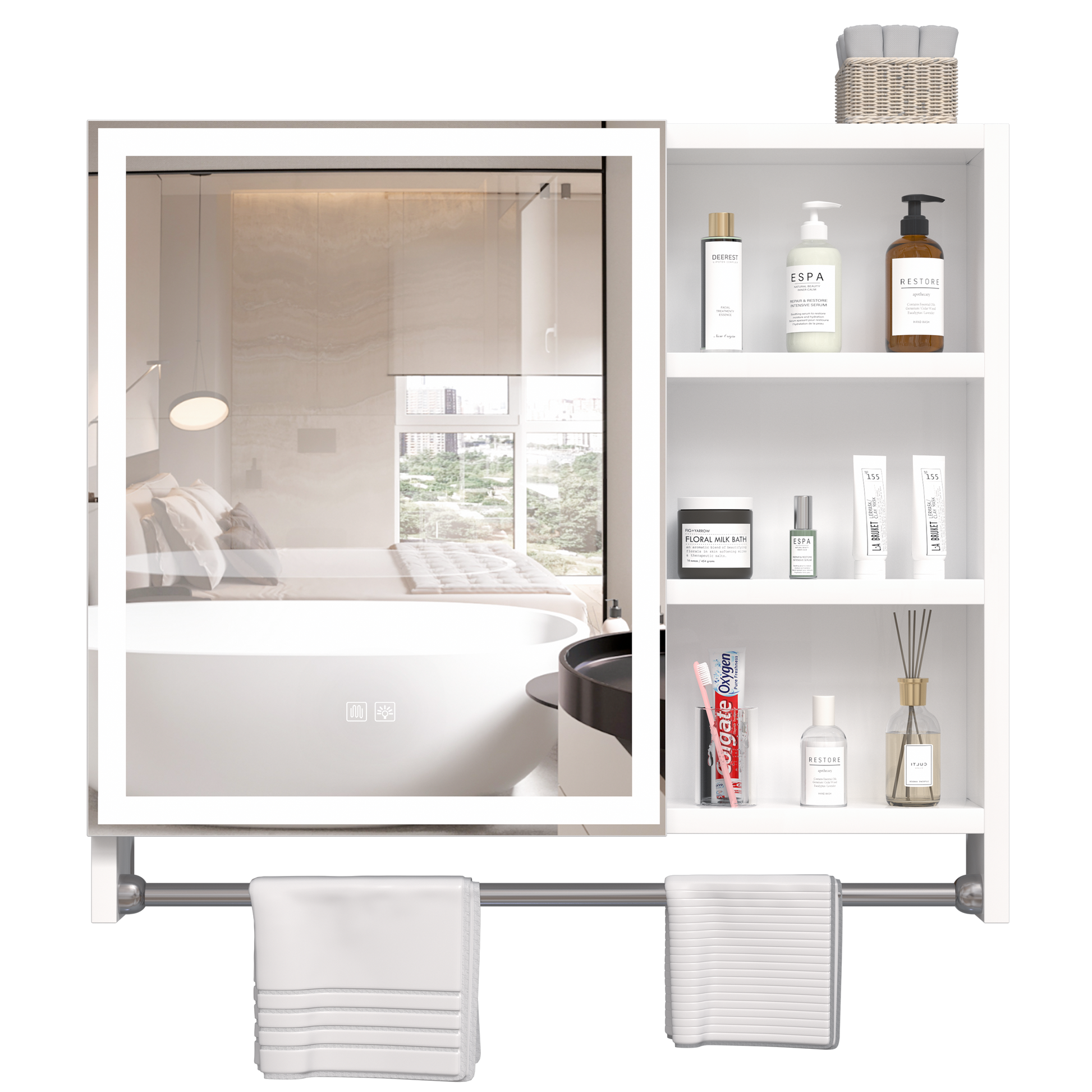 Mobile bagno con specchio LED, funzione antiappannamento, scomparti multi-livello e portasciugamani. Impermeabile IP44.