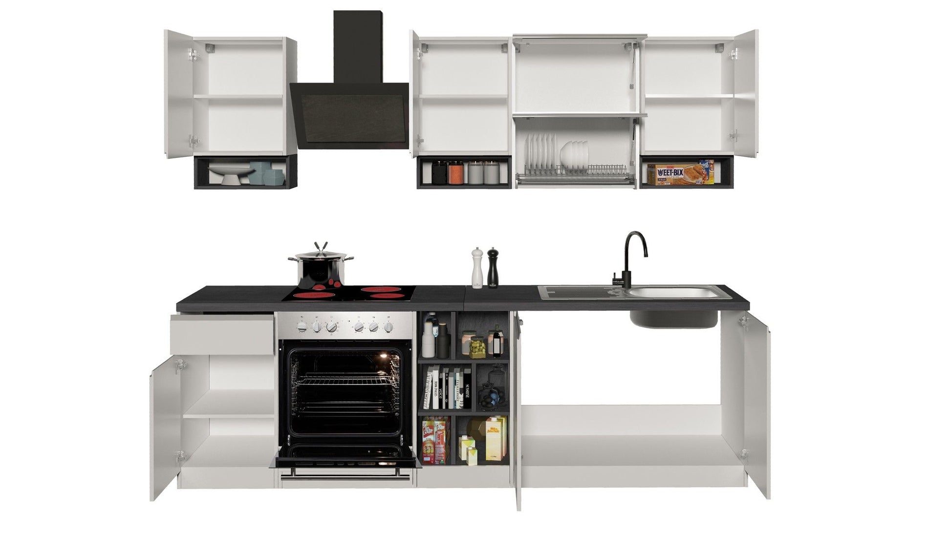 - La cucina lineare SOLE da 256 cm, nella sua seconda composizione, unisce perfettamente design e funzionalità. Composta da diversi elementi, permette di organizzare lo spazio in maniera ottimale.
