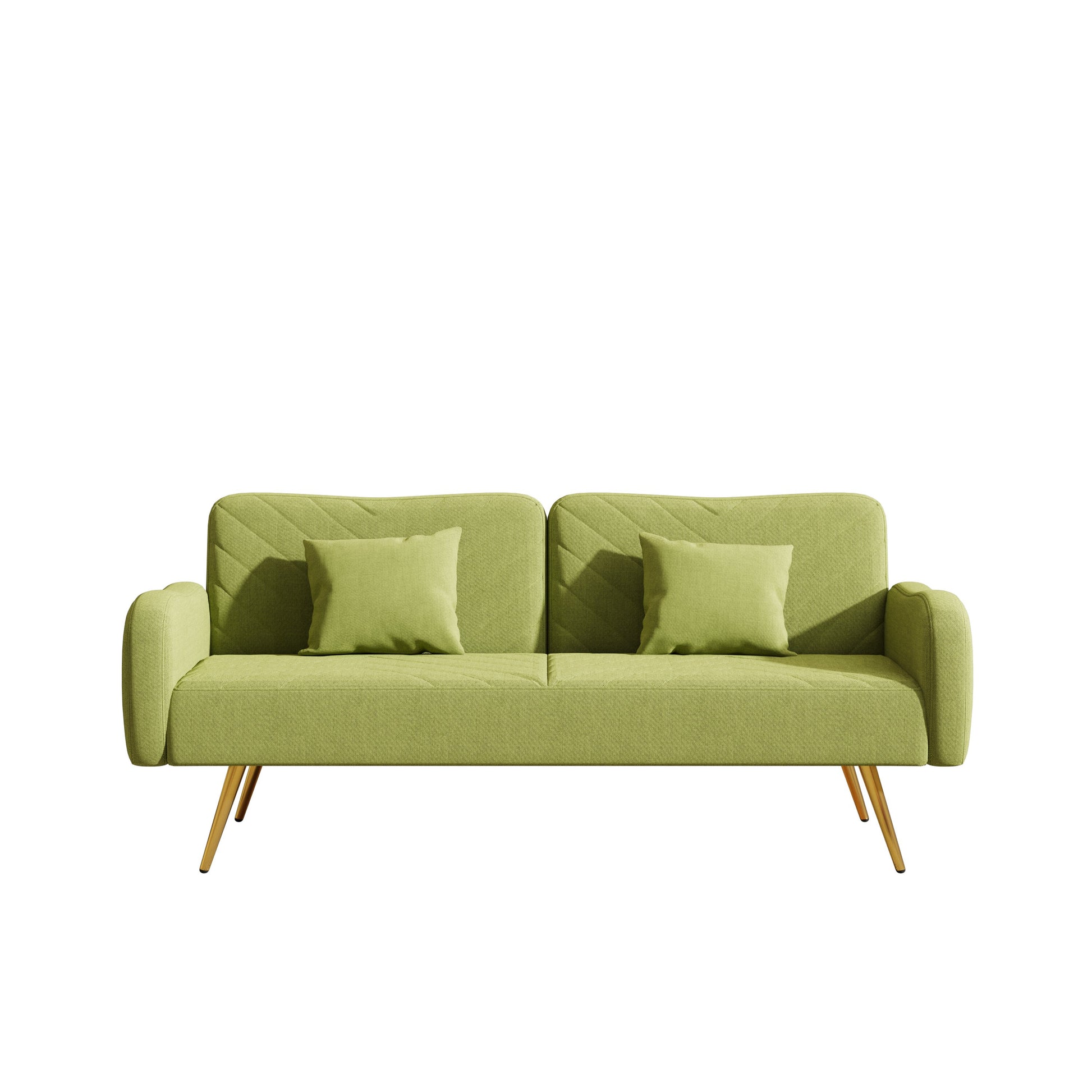 Divano 2 Posti Verde in Tessuto con Schienale Regolabile e Cuscini