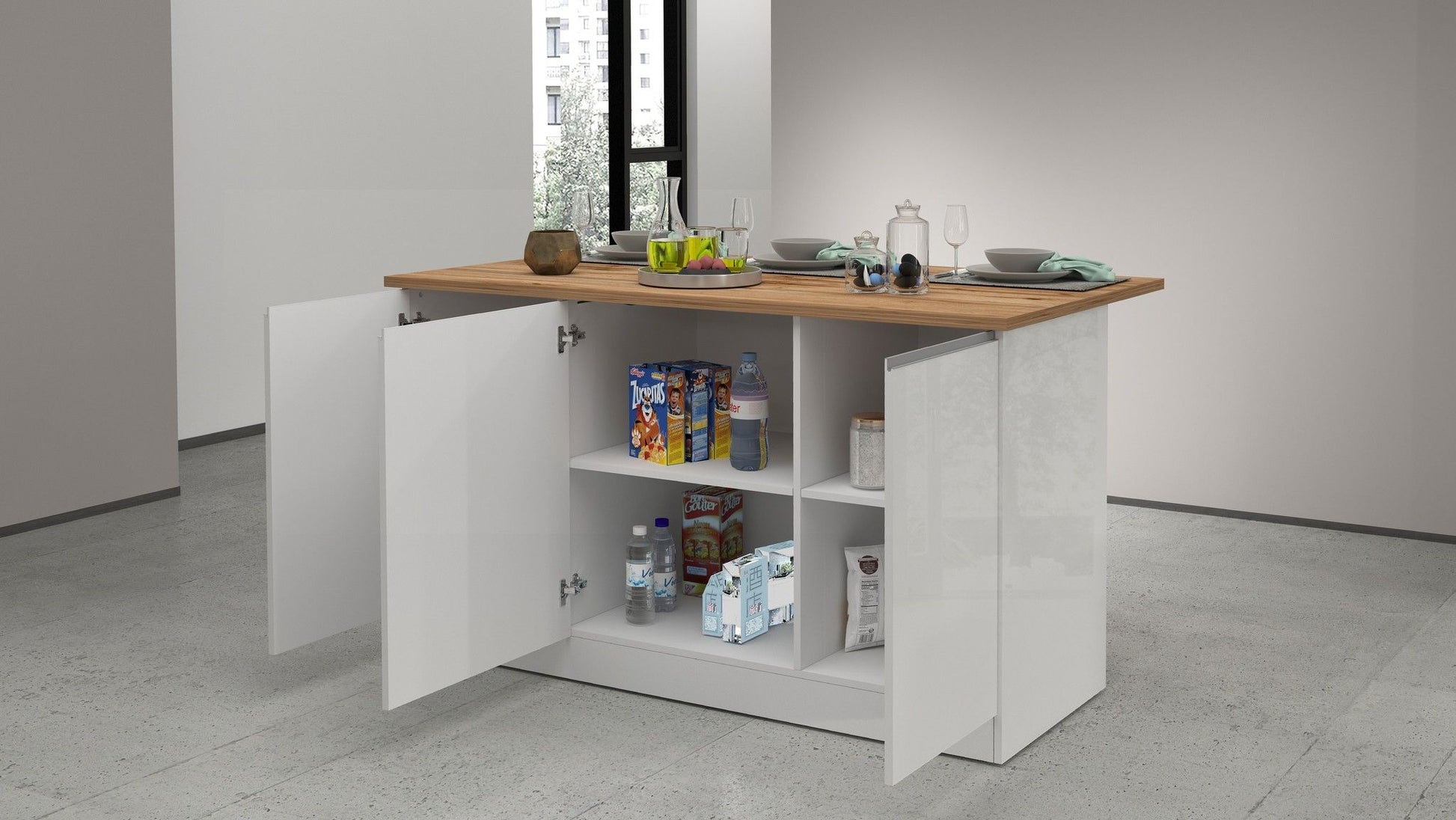 L'isola SOLE con 3 ante, composta da vani a giorno e realizzata al 100% in Italia, si distingue per la sua eleganza e modernità. Con un un design essenziale che riesce a catturare lo sguardo, all'interno dello spazio abitativo, questo complemento d'arredo si impone per la sua versatilità e l'alta funzionalità. Proprio per questi motivi è estremamente richiesta e uno dei nostri maggiori best seller. Disponibile in varie combinazioni di colore, tra cui antracite con report, antracite con rovere, binacon con rovere e bianco con report, questa isola aggiunge un tocco di stile e praticità a qualsiasi cucina. Con ante e vani a giorno ben organizzati, offre spazio sufficiente per riporre utensili ed elettrodomestici.