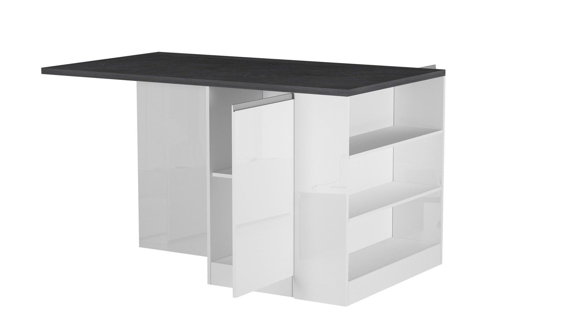 - Dotata di 2 ante battenti con ampi vani interni e vani a giorno, questa isola offre moltissimo spazio, consentendo di organizzare facilmente tutte le cose che ti servono in cucina. Le ante battenti sono dotate di maniglie in alluminio, con chiusura soft close, incassate nello spessore, caratterizzate da una forma a gola che conferisce un tocco di modernità al design.
