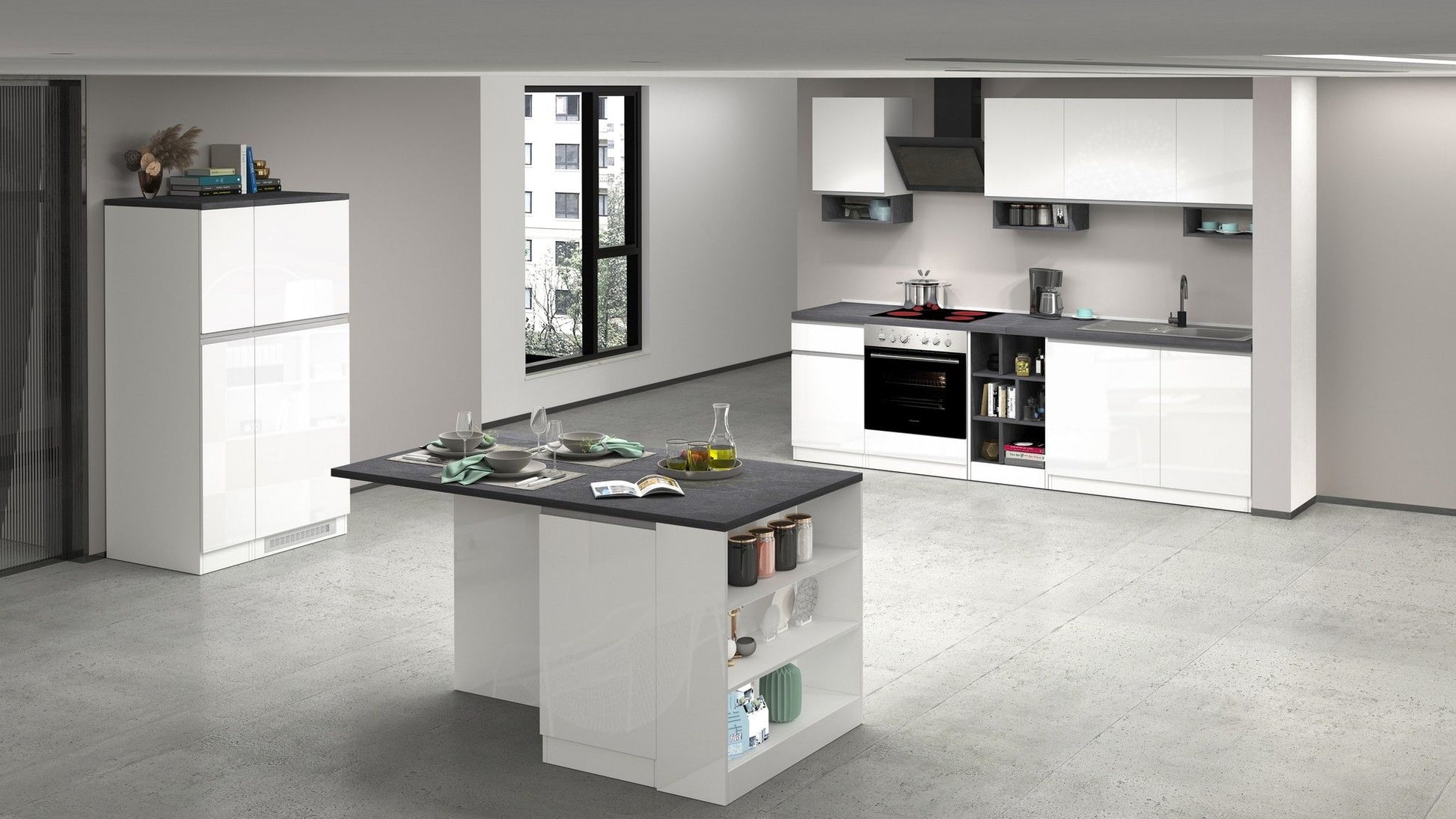 L’isola SOLE con 2 ante e vani a giorno, 100% Made In Italy, si distingue per la sua eleganza e modernità, grazie a un design in grado di calamitare da subito l'attenzione. La sua essenzialità si unisce alla funzionalità, rendendo l’Isola SOLE un complemento per la cucina molto ricercato. Dotata di 2 ante e vani a giorno, questa isola offre un'ampia versatilità d'uso, adattandosi alle diverse esigenze della casa. La sua struttura ben progettata e la qualità dei materiali utilizzati, la rendono una scelta ideale per chi cerca un elemento pratico e dal design raffinato. Disponibile in diverse combinazioni di colore, tra cui antracite con report, antracite con rovere, bianco con report e bianco con rovere, l’isola SOLE si adatta facilmente a qualsiasi stile di arredamento.
