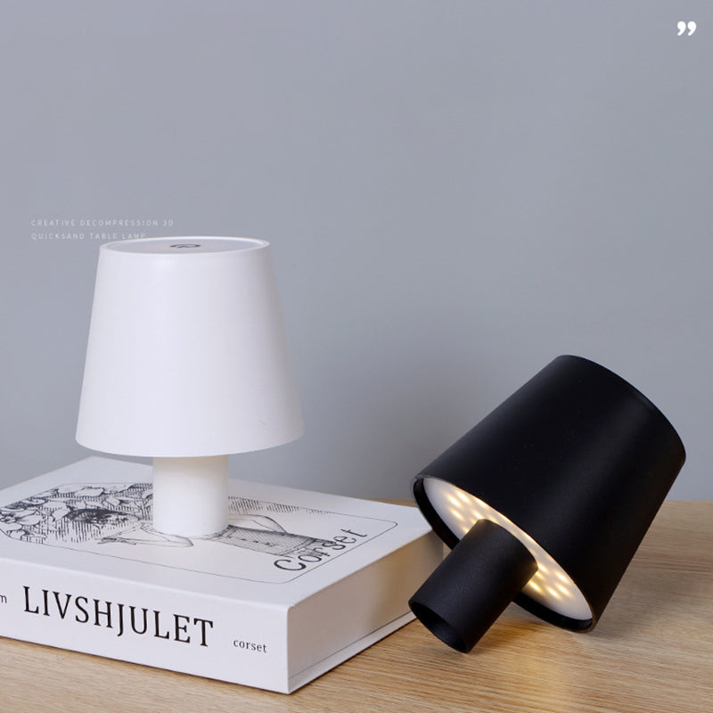 Lampada creativa ricaricabile con design fungo/bottiglia, 3W potenza, batteria 2000mAh e luce tricolore con dimmer infinito. Perfetta per bar e atmosfera.