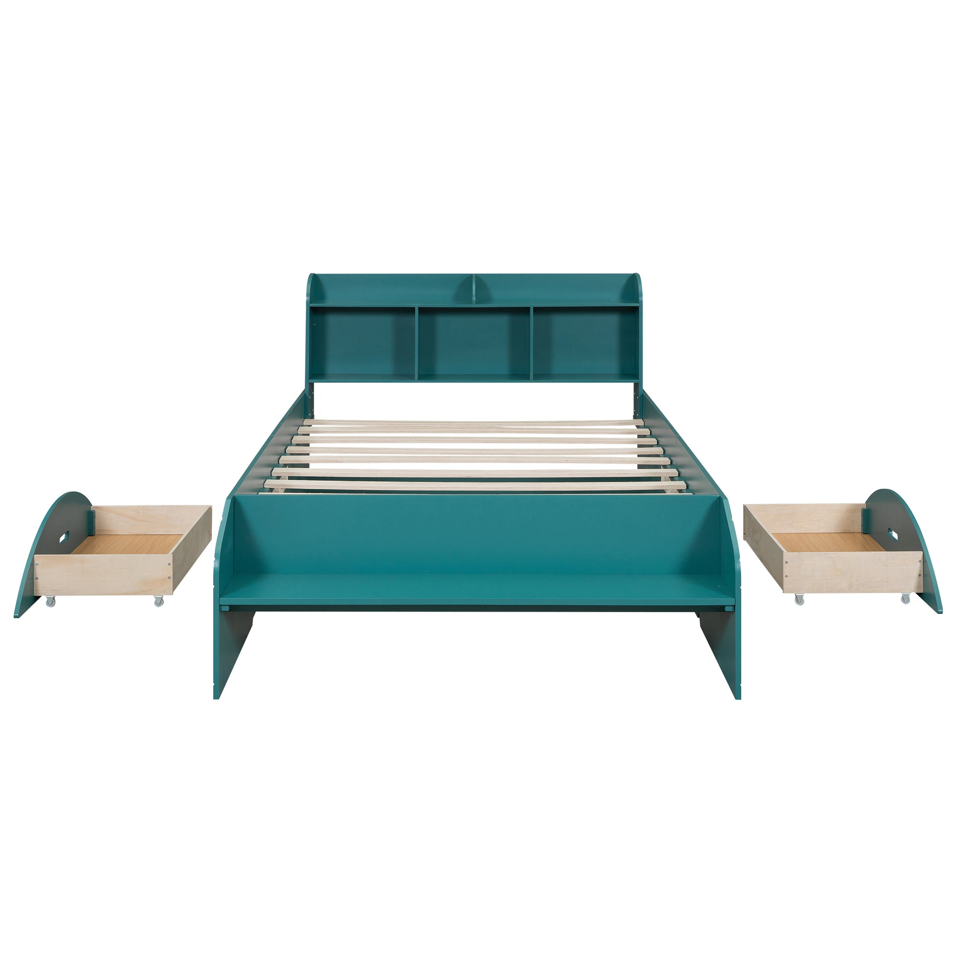 Letto Full Size in Legno con 2 Cassetti, Testiera e Pediera Contenitore - Verde Scuro