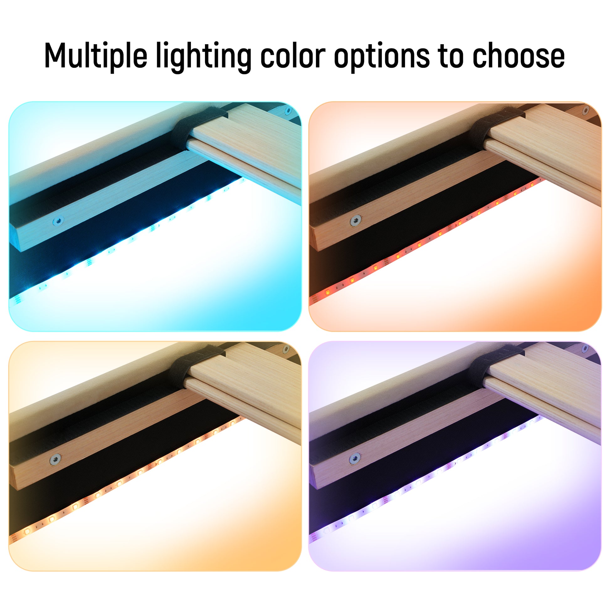- Luci LED RGB Integrate: Illuminazione multicolore su testiera e 3 lati del letto