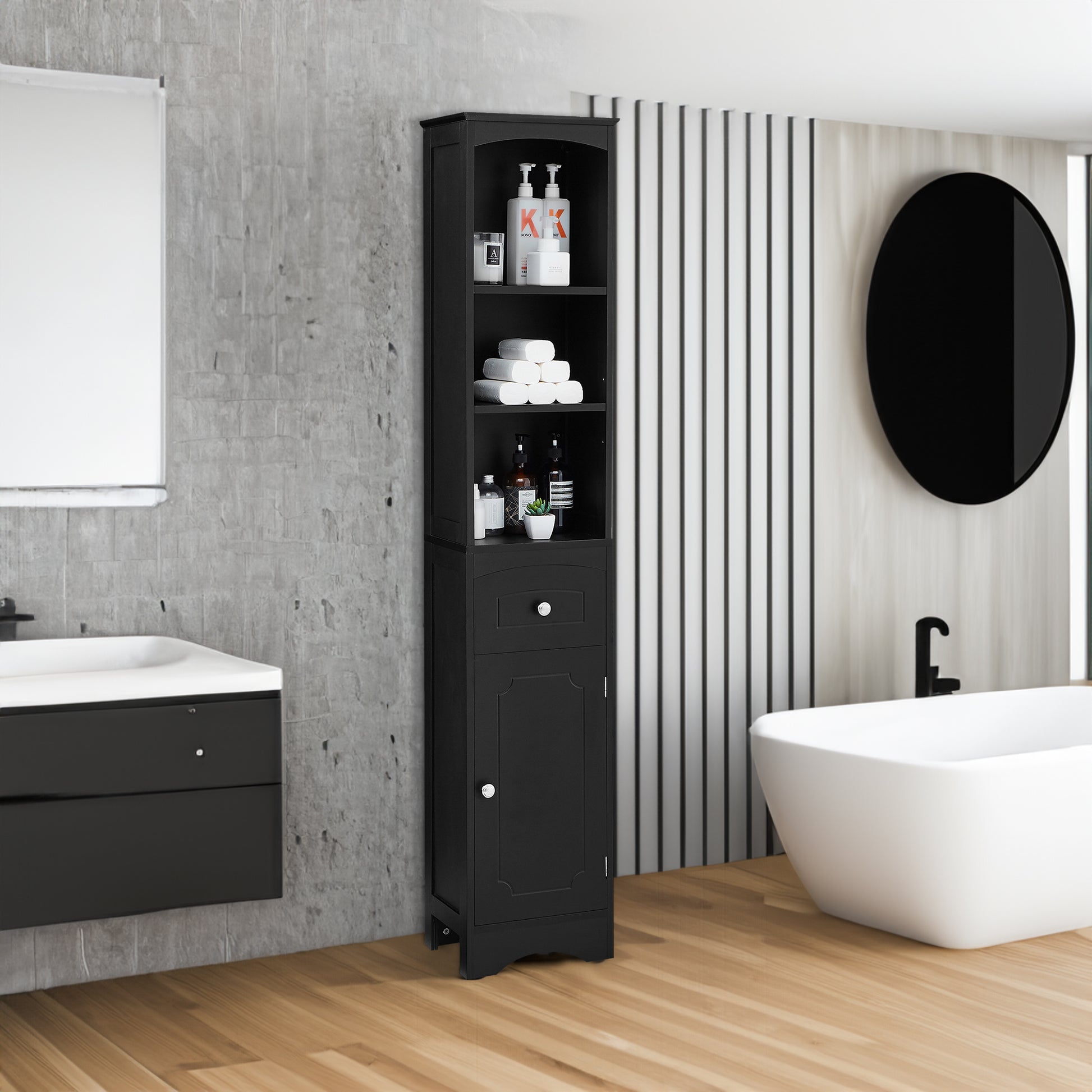 Mobile Bagno Stretto Alto 170cm con 1 Cassetto e Anta