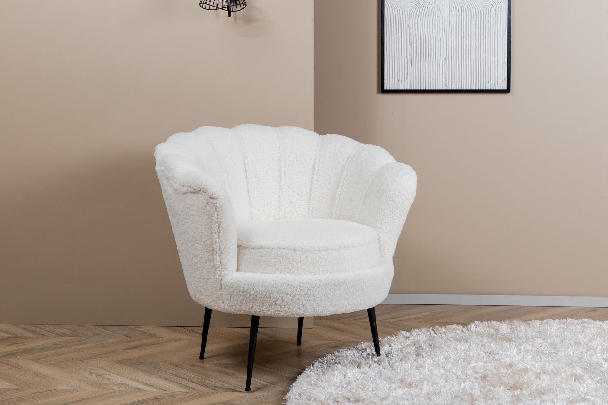 Una poltrona in tessuto teddy peloso è perfetta per tutti gli appassionati di interior design! Calais è una serie moderna e senza tempo con grande attenzione al design e all'alto comfort. Con il suo elegante linguaggio di design, gambe in metallo trend-safe in forma angolata e caldo colore bianco, questa poltrona è garantita per essere un accogliente punto focale nella tua casa.