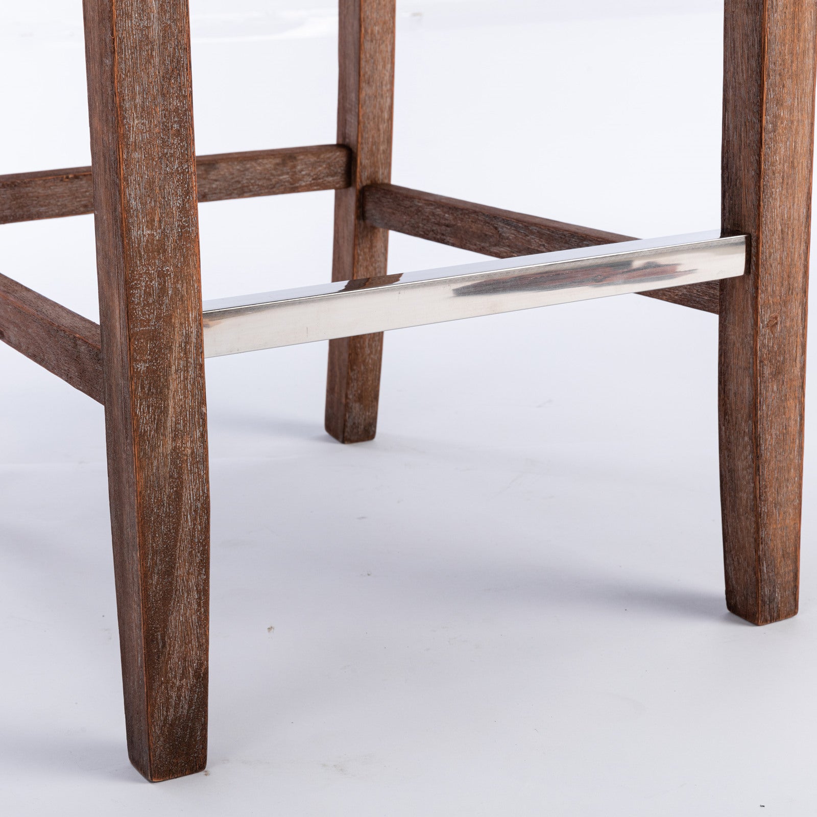 Coppia sgabelli bar altezza 69cm in velluto beige con schienale wingback capitonné, borchie decorative e gambe in legno. Perfetti per cucina, bar e colazione.