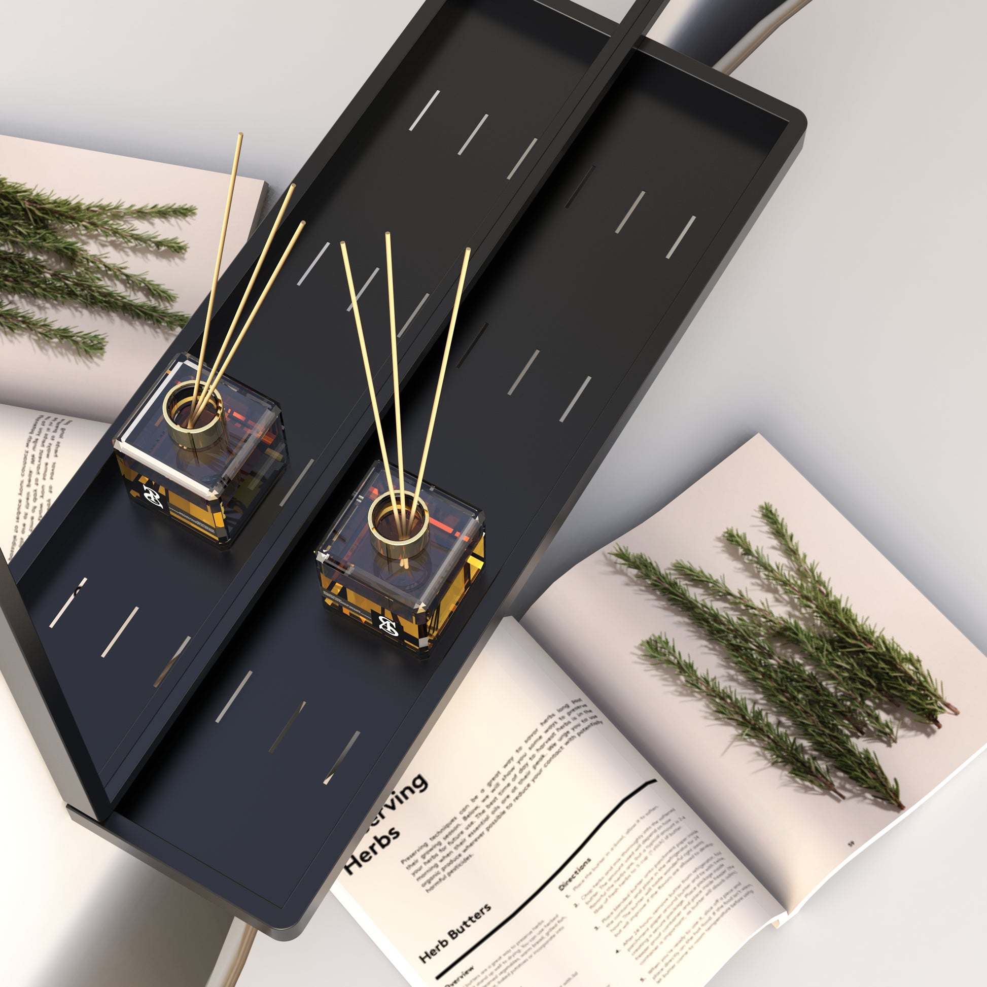 Due mensole nascoste, una superiore e una inferiore, offrono spazio per gli accessori, mentre l’asta centrale mantiene ordinati abiti e cappotti.