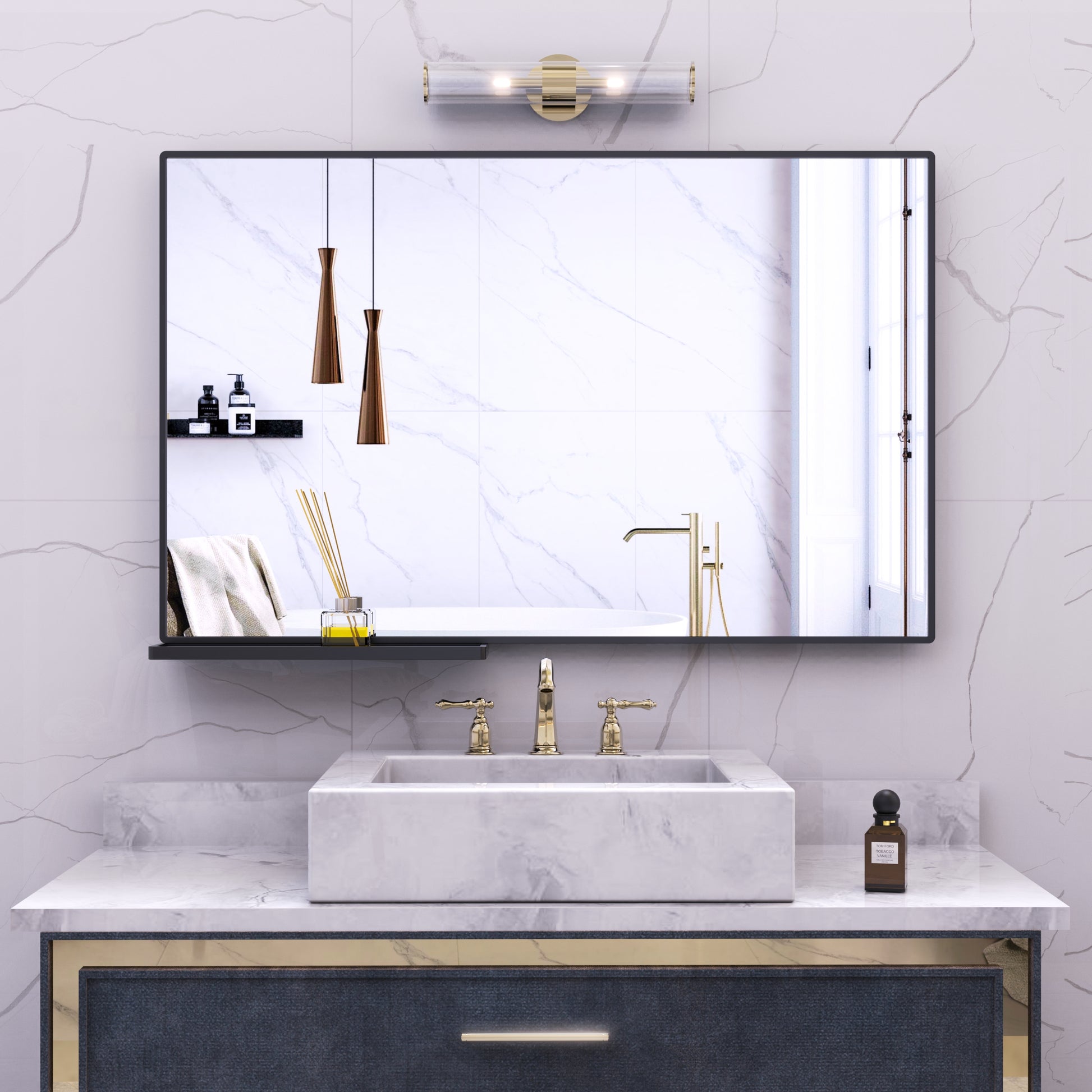 Specchio Bagno 102x76cm con Mensola Nero