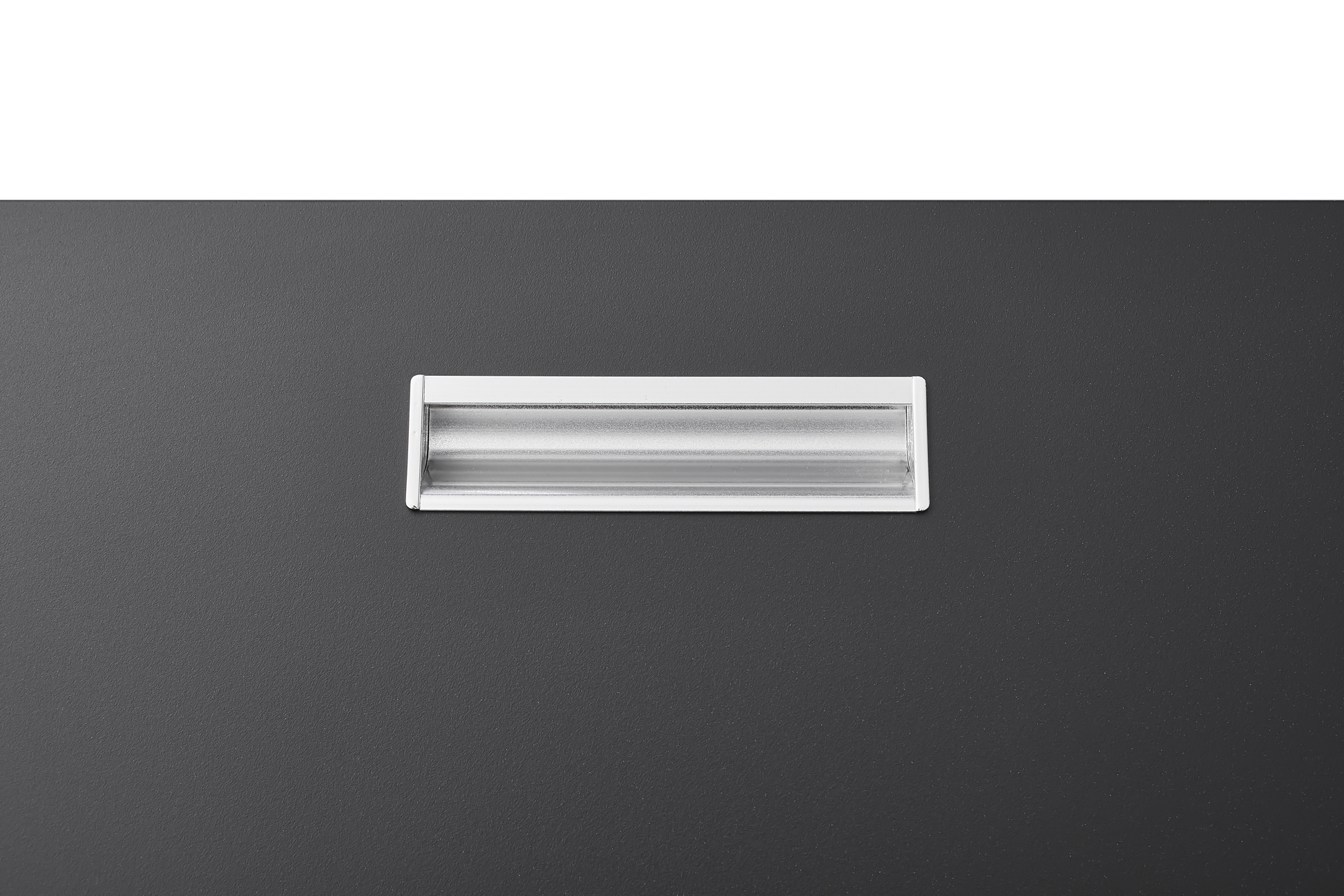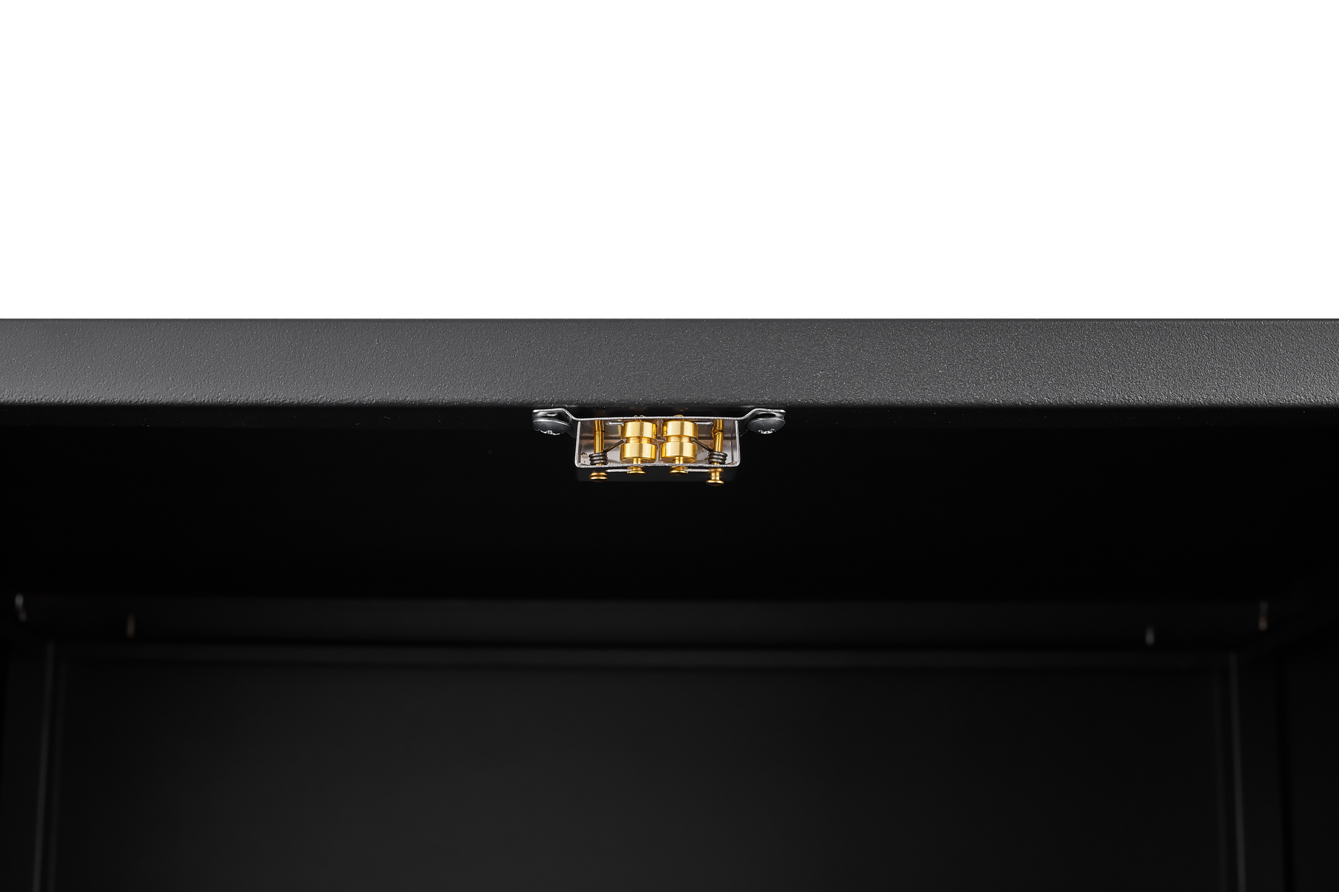 Mobile per stampante in acciaio nero con 2 porte. Design ufficio moderno.