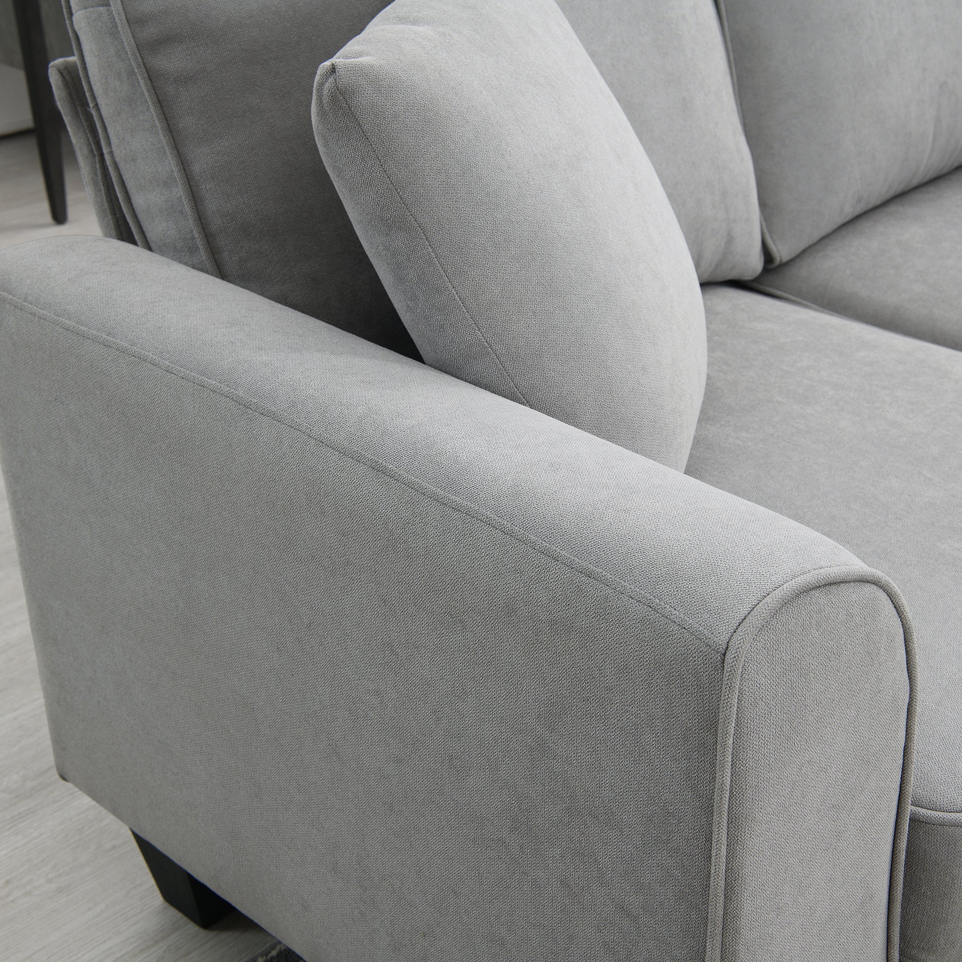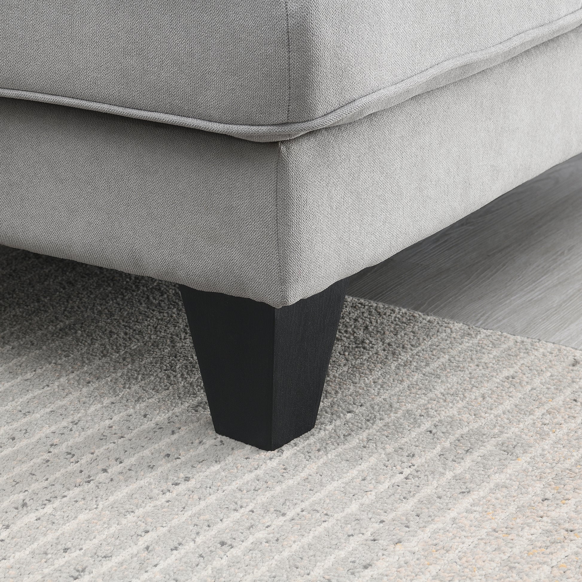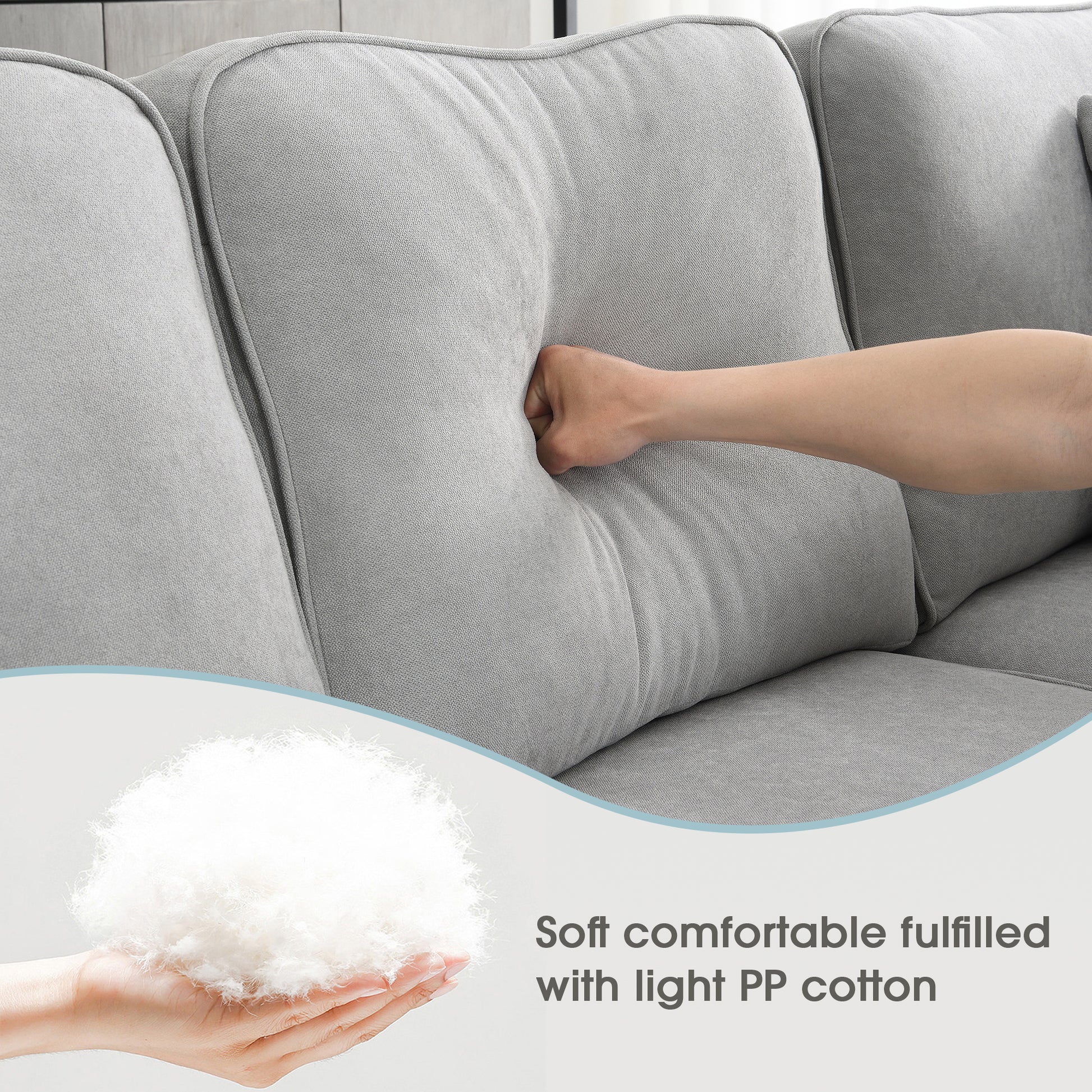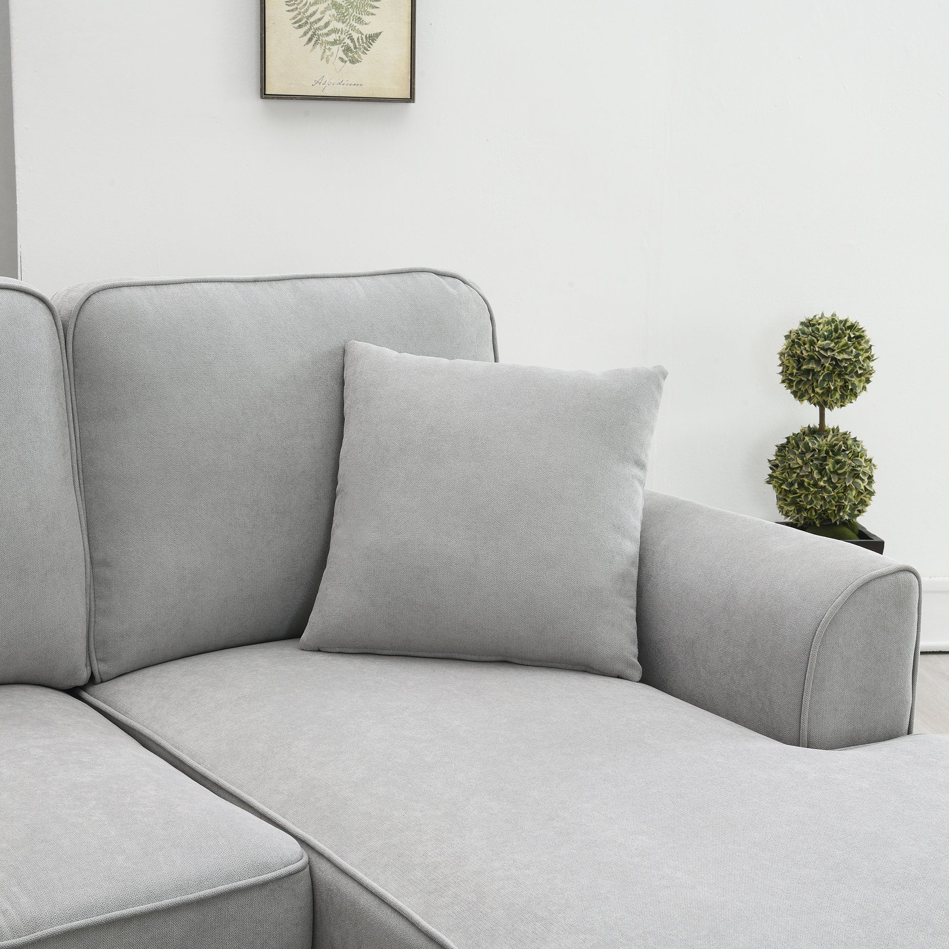 Elegante divano sezionale a forma di U da 7 posti in tessuto grigio chiaro. Design modulare componibile con struttura robusta in legno massello e ferro. Include 3 cuscini decorativi per comfort e stile superiori.